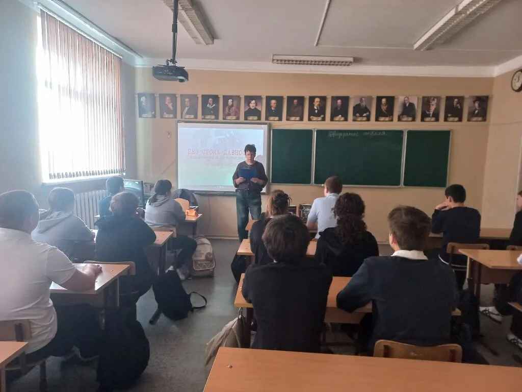 В этот день по всей стране проходят мероприятия, призванные напомнить о бесчеловечности нацистской идеологии и о той цене, которую заплатил советский народ за Победу. Одним из таких важных мероприятий стал классный час под названием «Без срока давности», проведенный в 8-Б классе библиотекарем Пономаревой С.А.
